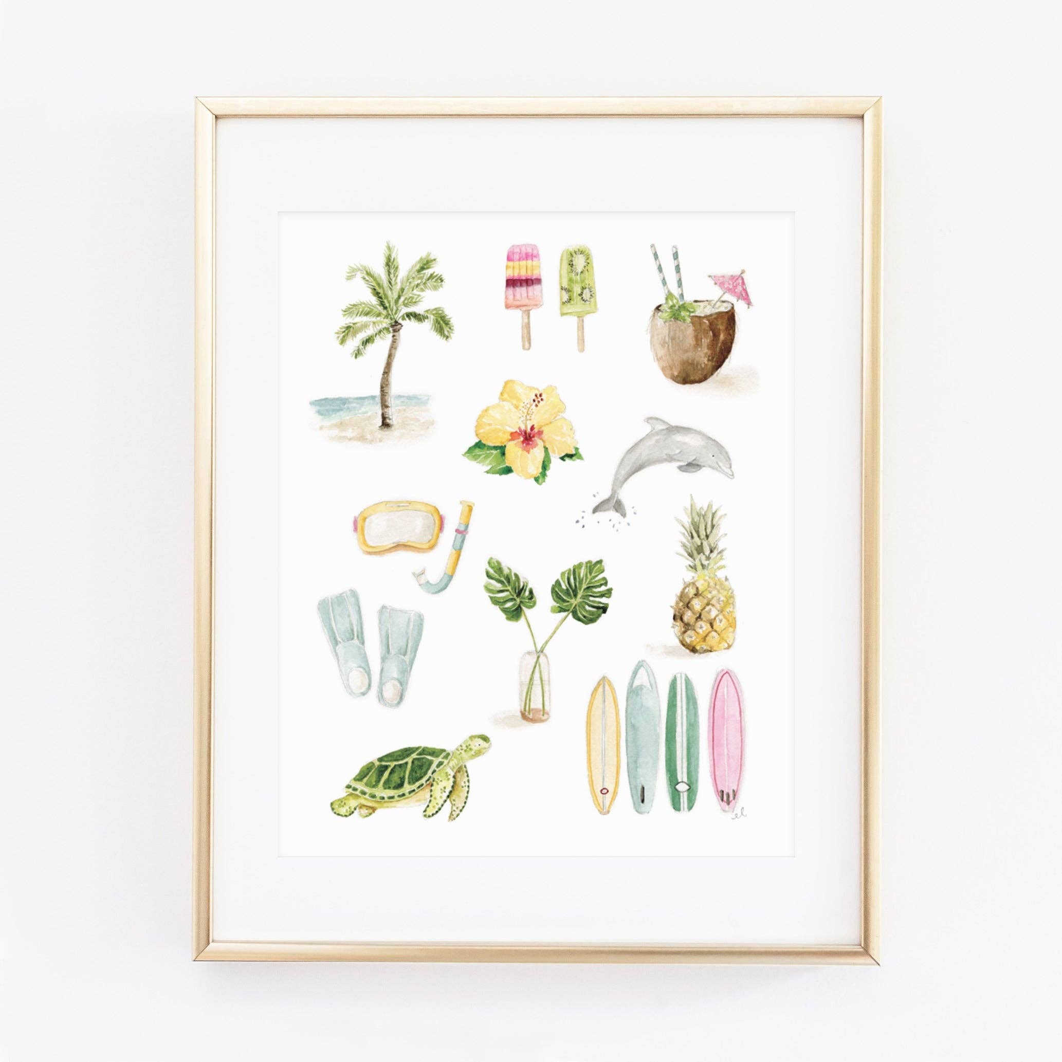 Add a touch of delight to your kitchen with this 100% cotton tea towel. Tropical illustrations cover the towel making it perfect for washing up, lining a basket, or displaying. Details: - 100% cotton flour sack tea towel - 19" x 28" - Loop for hanging - Machine wash and dry - Original watercolor artwork by Emily Lex
