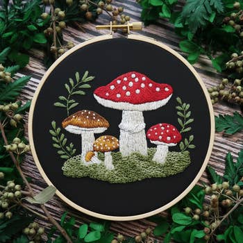 Toadstool Serenade Frog & Mushroom Craft DIY Embroidery Kit