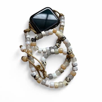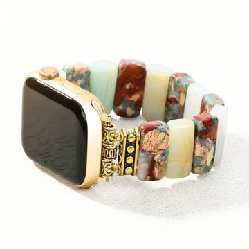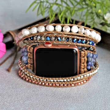 Gorgeous collection of Apple Watch bands in various colors and styles. Â Available in 38/40mm and 42/44mm. Â Beaded style is elasticized. Â Leopard style has adjustable snap closure. Â