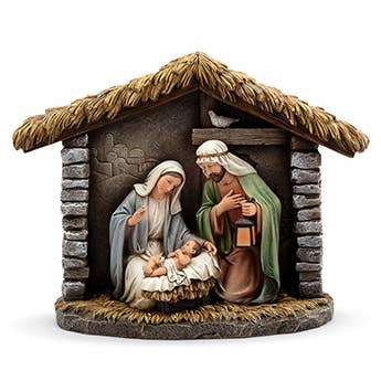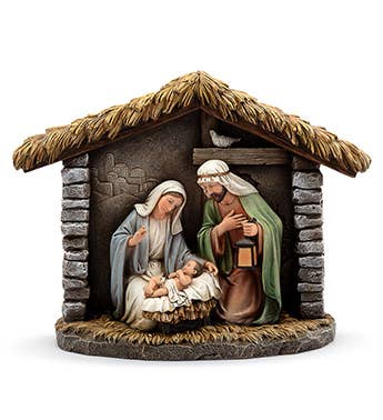 Handmade in the Holy Land, this wooden nativity is a must-have for your Christmas decorations. Its small size makes it perfect for your desk or entryway! Complete with stationary figures. Made in the West Bank. Dimensions: 4"h x 5"w x 3"d. Keywords: nativity, nativity set, nativity scene, crèche, holy family, Christmas décor, Christmas decorations, holiday décor, olive wood, wooden nativity set.