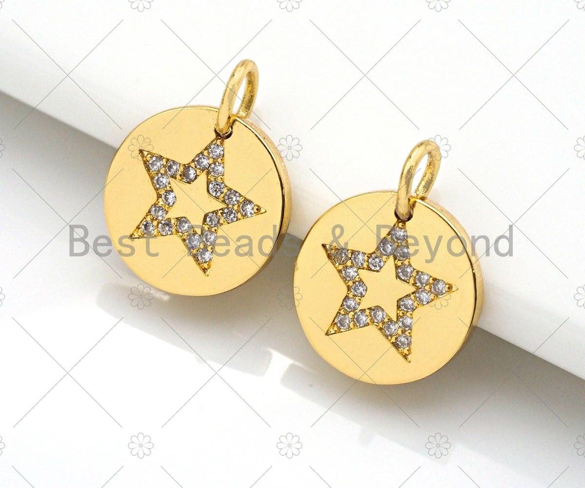 Gold Or Silver Star Of David Charm For Necklace And Also It Can Be Made Into Earrings, Pave Set With CZ,CPG792 Listing is for one single piece. Material: 18k Gold And Rhodium Plating Over Brass Stones:Cubic Zirconia Measurements:17mm x 13mm Open Jump Ring:3.8mm All Sizes Are approximate Product is lead, Cadmium and Nickel Free Ship From Los Angeles