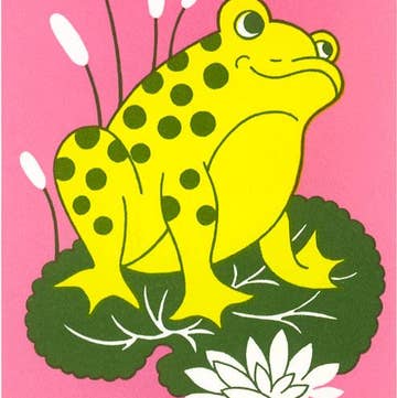 Letterpress printed, limited edition print from an original illustration of a frog and a toad! Comes in a plastic sleeve with a chipboard backing board Handprinted, one piece of paper and one color at a time, in a small 2-person studio just outside of Asheville, North Carolina, on vintage letterpress equipment, using eco-friendly practices, American made paper, compostable plastic sleeves (when possible). We are truly a teeny-tiny operation and appreciate every order!