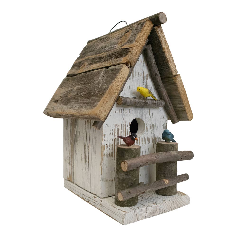 Bird In Hand Amish Made Columbia Covered Bridge Bird Feeder, 1013. Fly-through style bird feeder made from recycled and reclaimed materials. Holds 1 quart of bird seed. Post mounts with included bracket. Made in USA.