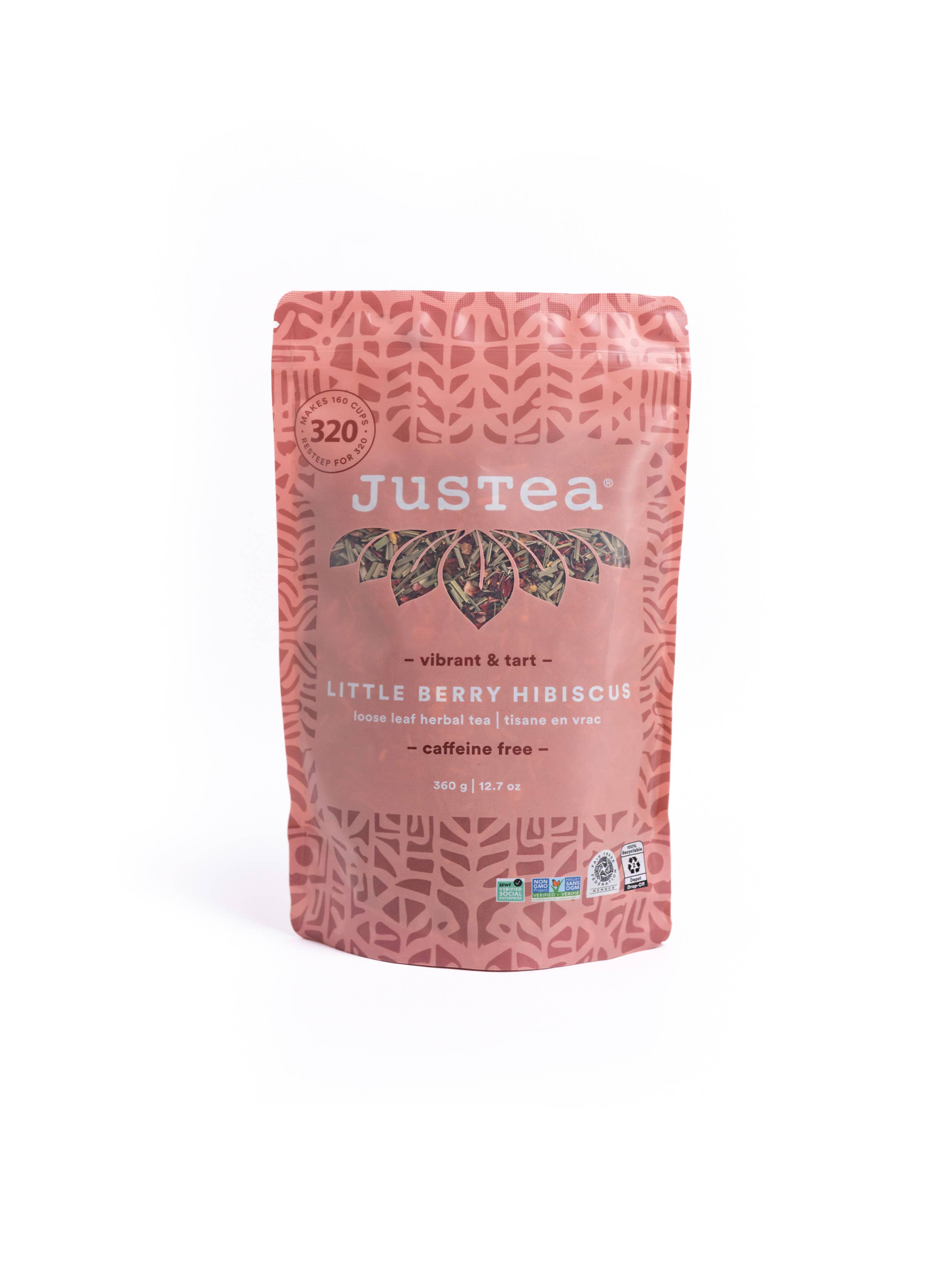 BULK TEA PACKAGE: Our top-selling Peppermint Detox is now available in these large bulk pouches: 180g/6.3oz per package. 360 cups of tea! SERVE or REFILL: This package is a great option for cafes & shops who serve fresh tea to customers, or by portioning out tea from this pouch to sell in bulk LITTLE BERRY HIBISCUS is Vibrant & Tart with notes of Hibiscus & Berries STAND-OUT PACKAGING: Each stand-up and resealable pouch has a window in the front of showing the beautiful whole tea leaves inside. The back of the pouch shares the story of the Kenyan tea farmer who helped make the tea FARMER-DIRECT STORY: Every purchase directly supports small-scale Kenyan tea farmers EARTH-FRIENDLY: 100% recyclable and reusable HAND-PICKED TEA from Kenya: Organically grown, free of chemicals/pesticides 100% NATURAL INGREDIENTS: Organic Hibiscus, Rosehips, Black Currant, Cranberry, Blueberry, Elderberry, Organic Lemongrass, Organic Rooibos, Organic Licorice Root (Caffeine-Free) 2 YEAR SHELF LIFE Guaranteed