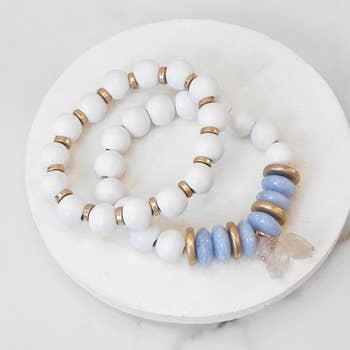 Lightweight stretchy beaded bracelets with fair trade recycled glass beads and wood accents, handcrafted on the East Coast. Glass bead colors may vary as they are made from recycled glass bottles. Standard 7" wrist size. One bracelet per purchase.