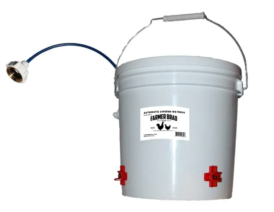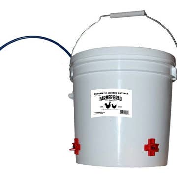 DIY Poultry Waterer Base that fits most 5-gallon buckets. The lid/base snaps directly on the bucket and instantly turns it into a gravity waterer! Simply fill the bucket up, snap the Poultry Pro Waterer on, and flip it over. Can also be used with a garden hose for self-filling, self-cleaning capabilities, using the included hose adapter. *Bucket not included* Package Dimensions: 16x16x4 in Item Weight: 1 lb White PVC 6 waterers per case