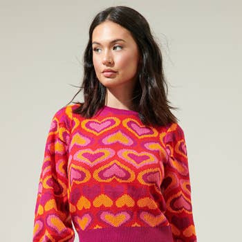 SKU: W02365, W02365 Made in China Aesthetic: Casual Care Instructions: Hand wash Fabric: 40%NYLON, 30%ACRYLIC, 30%POLYESTER Fit: Contemporary Neckline: V-neck Occasion Theme: Valentine's Day Occasion: Everyday Pattern: Hearts Season: Fall/Winter Sleeve Length: Long Sleeve Product Language: English Weight: 90.72 g (3.2 oz)