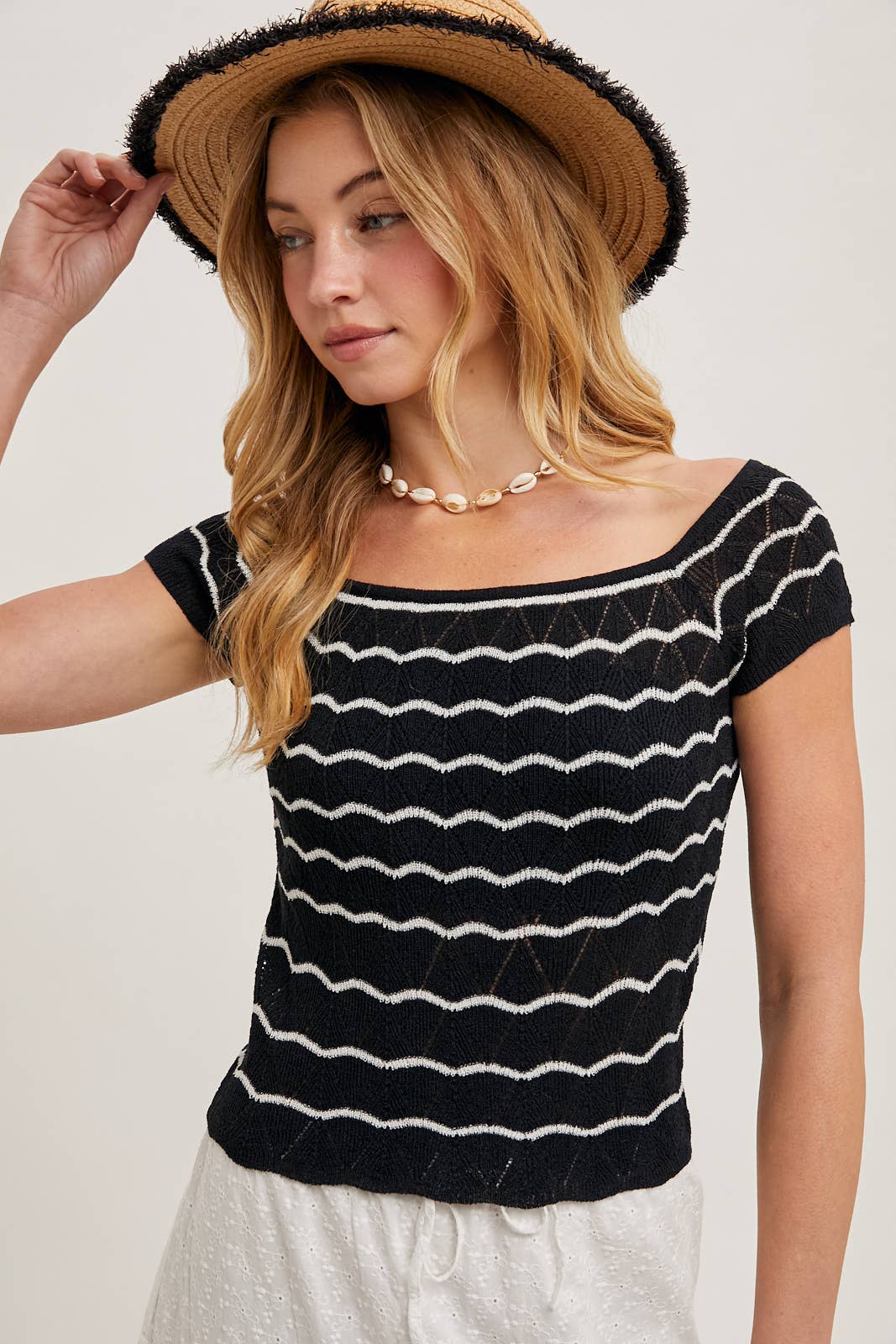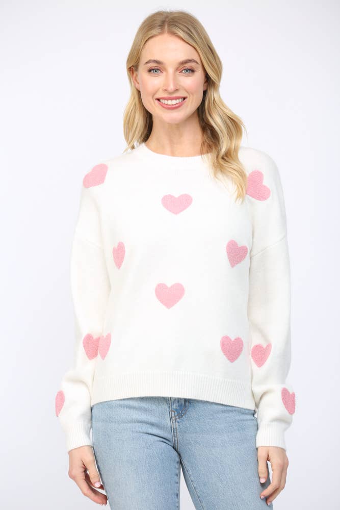 A charming knit sweater featuring delicate heart scallop trim details for a playful and romantic touch. The contrast design adds visual interest, highlighting the intricate knit pattern. Crafted for comfort and style, this sweater boasts a soft, cozy texture and a relaxed fit, making it perfect for casual outings or layering in cooler weather. The unique scalloped edges lend a feminine flair, ensuring this sweater stands out in your wardrobe. -Model is 5'9" and wearing a S/M