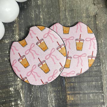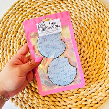 Keep your car cupholders nice and dry while adding some greek flair to your ride with these neoprene car coasters! They come in a set of two per package and fit in most car cupholders. This top-trending car accessory is such a great grab-and-go gift or bid-day box addition to stock up on!