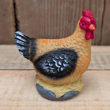 In Zimbabwe, an artist named Simon transforms recycled scrap metal into pastoral farm chicken garden art sculptures. Sold singly. Because this is a handcrafted item, each will vary slightly. Please note that weathering should be expected if the sculpture is exposed to the elements over a long period of time. Dimensions: 17"L x 12"W x 13"H Crafted from: Recycled metal, paint