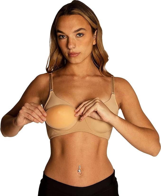 Redefine your lingerie game with our latest innovation, crafted for versatility, comfort, and a seamless fit. This adhesive bra is a game-changer for those who value flexibility in their wardrobe choices, providing the perfect foundation for any outfit. * Seamless * Front fasting hook for optional cleavage * Adhesive back Hand wash with mild soap in cold water. Air dry. Do not use powder, moisturizer, oils, or fragrances near the bust area. WARNING: Do not apply over broken, damaged, or sun-burned skin, if you have trouble removing the pastie, take a hot shower or soak in the bath.