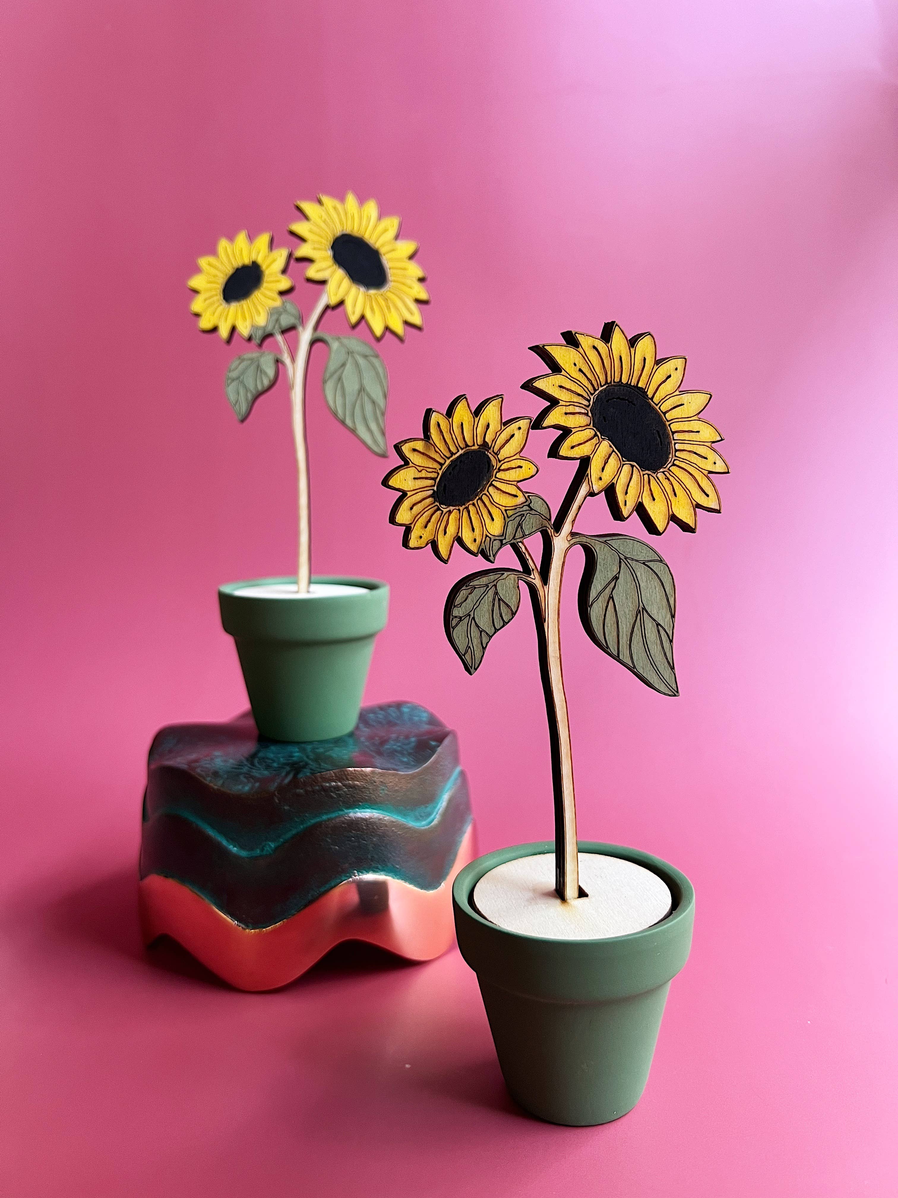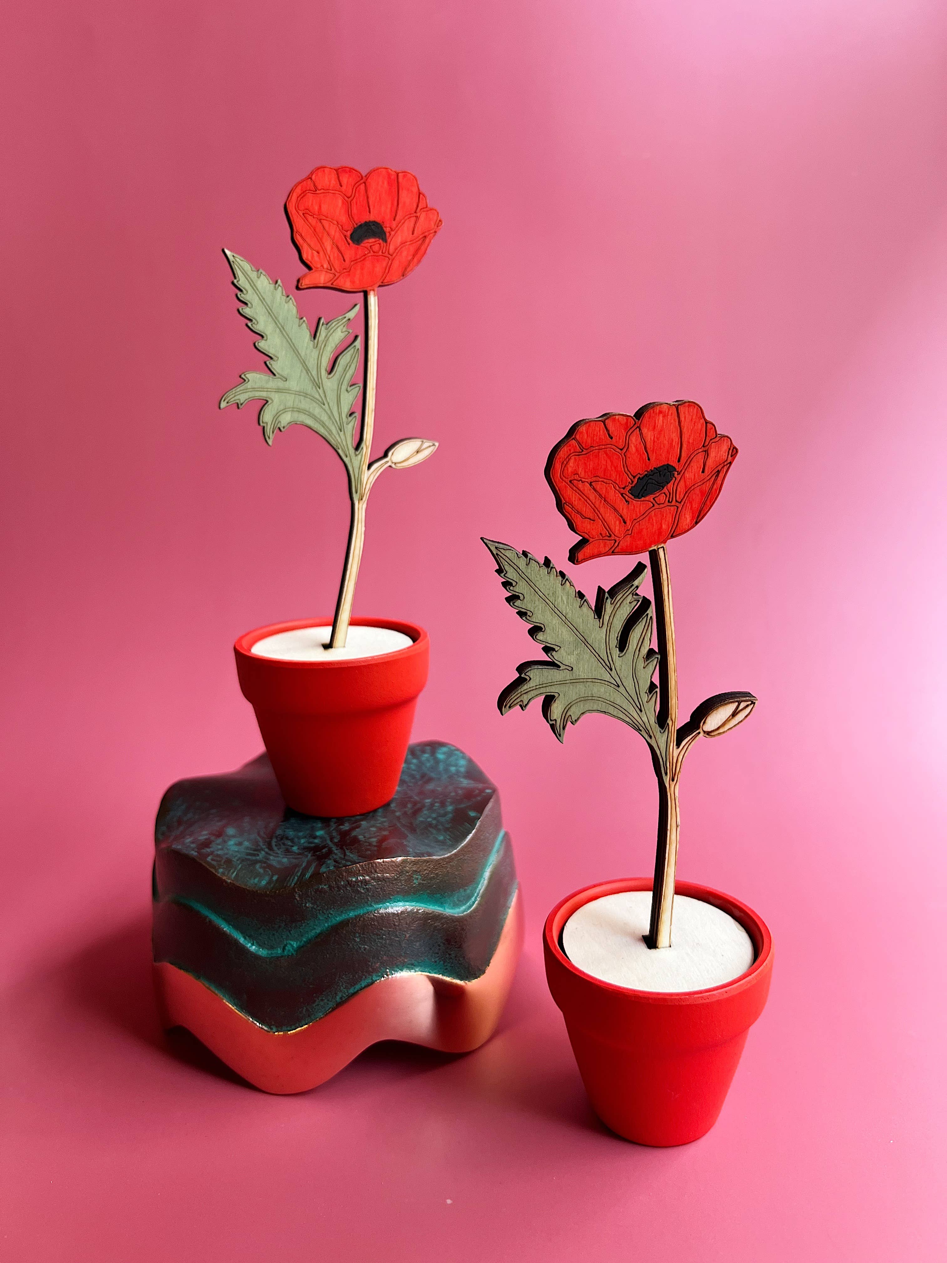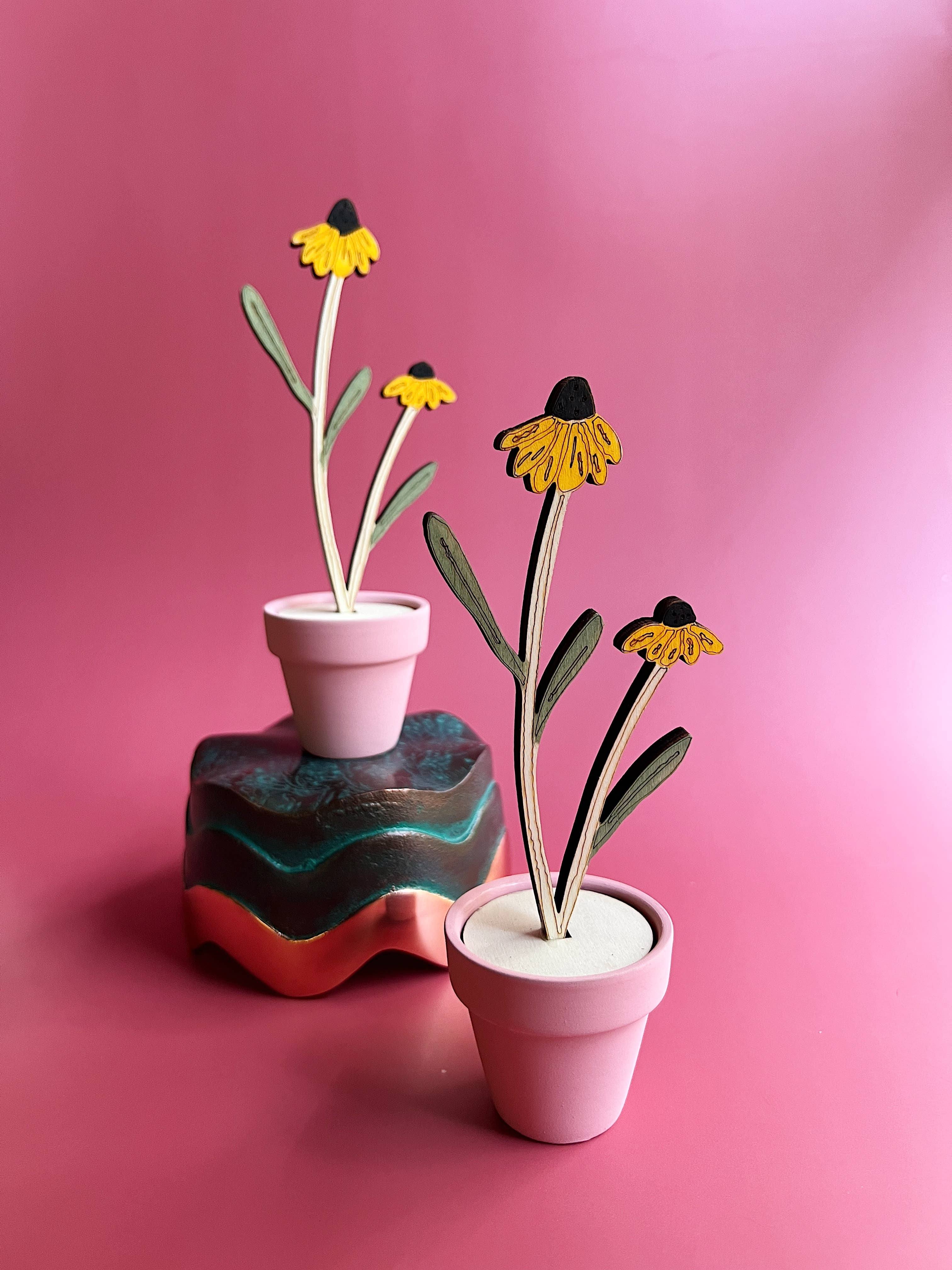 A lovely hand painted wooden aster in terracotta pot- a forever flower! Each flower is hand painted and "potted" securely in a mini terra cotta pot. I T E M • Hand painted wood flower in pot • 3mm birch plywood, 2 inch terracotta pot • measures about 7 inches tall, 3 inches at widest point