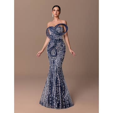 DR547 Romantic Pearl Embroidered Silver Bustier Evening Dres for wholesale on Faire