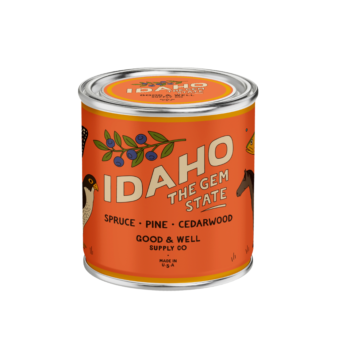 The Idahome Soy Candle creates a warm and inviting atmosphere made with non-toxic fragrance and long-lasting soy wax. Perfect for a cozy home setting, its inviting aroma will linger in your space and will feel like a hug from your favorite state. Notes of cypress, fir, pine, clove, fireside, orange peel, cinnamon, and ginger. **this is the same scent as Hygge** Made with 100% soy wax and certified clean scents that are free of carcinogens, reproductive toxins, and other hazardous chemicals often found in fragrance. All materials and supplies are 100% sourced in the U.S.
