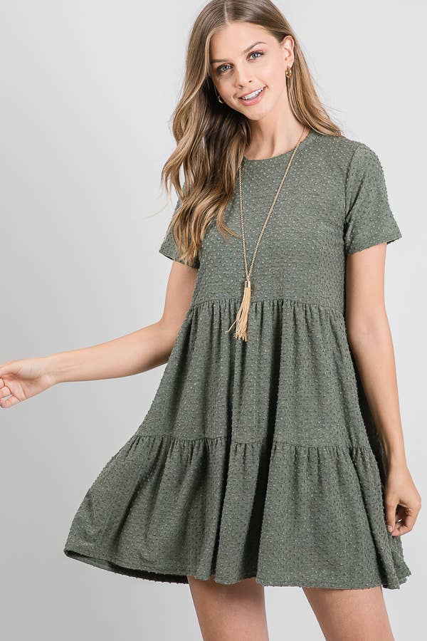Solid Ruffle Triple Tiered Midi Dress
