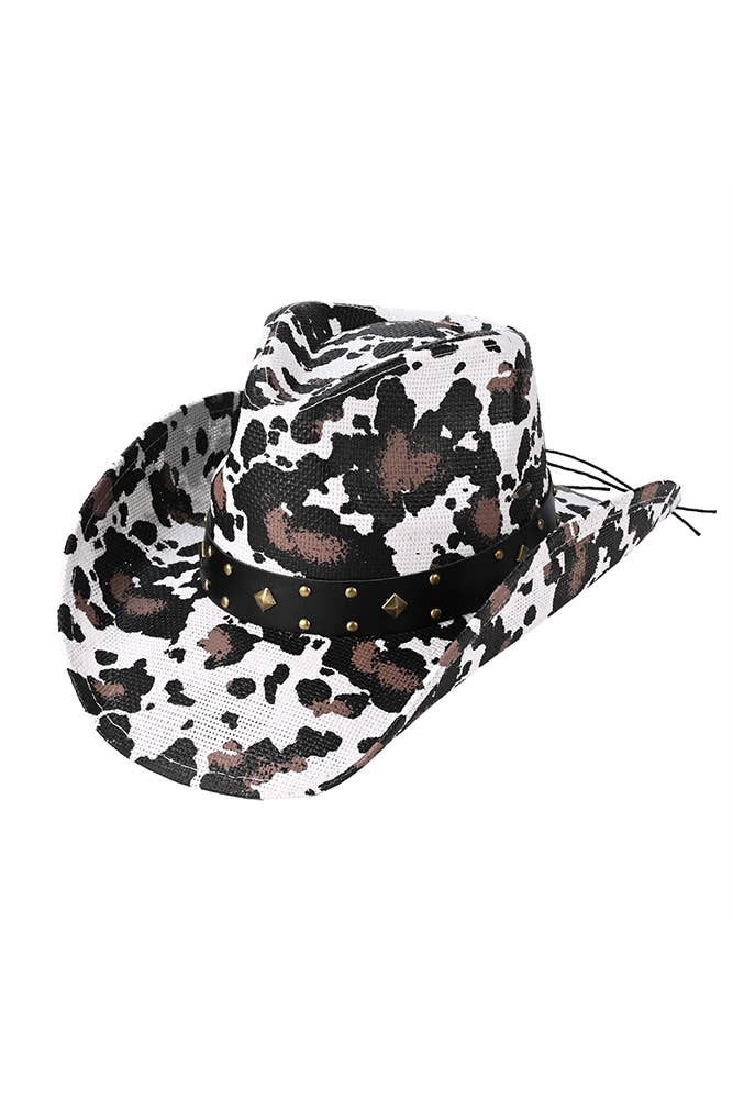Cow Print Draw String Cowboy Hat