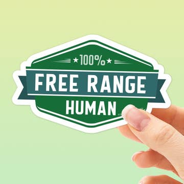 Free Range Human Waterproof StickerThank you for helping support a stay at home small business mama and be sure to watch for my upcoming designs! Perfect for putting on planners, tumblers, cell phones, laptops and more! waterproof 3 inch sticker