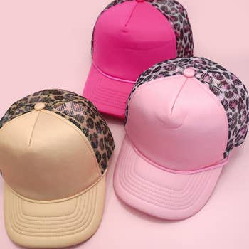 Wholesale Dark Pink/Black Leopard Mesh Trucker Hat