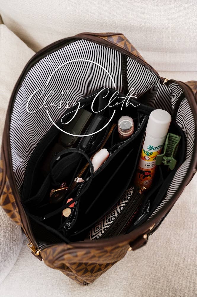 Stay organized and look fashionable at the same time with this stylish felt tote bag purse organizer! Featuring 9 pockets and robust gold hardware, it's designed to take your stuff from bag-to-bag in a flash! Wave goodbye to the chaos and say hello to the Tote Bag Purse Organizer Insert - cause it's here to bring order back to your bag! Fabric: 3mm Felt Dimensions: 13.4" L x 7.0" W x 6.7" H