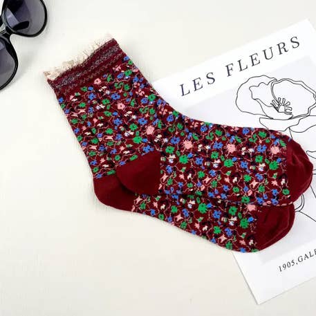 Size - One Size (35-39 Yards) Style - Vantage Material - Combed cotton Pattern - Color matching Indulge in autumn's enchantment with our Combed Cotton Women's Socks. These Floral Lolita mid-calf socks are a whimsical addition to your seasonal style. Adorned with delightful floral patterns, they blend elegance with comfort for a truly captivating autumn look. Embrace the season's magic in every step you take.