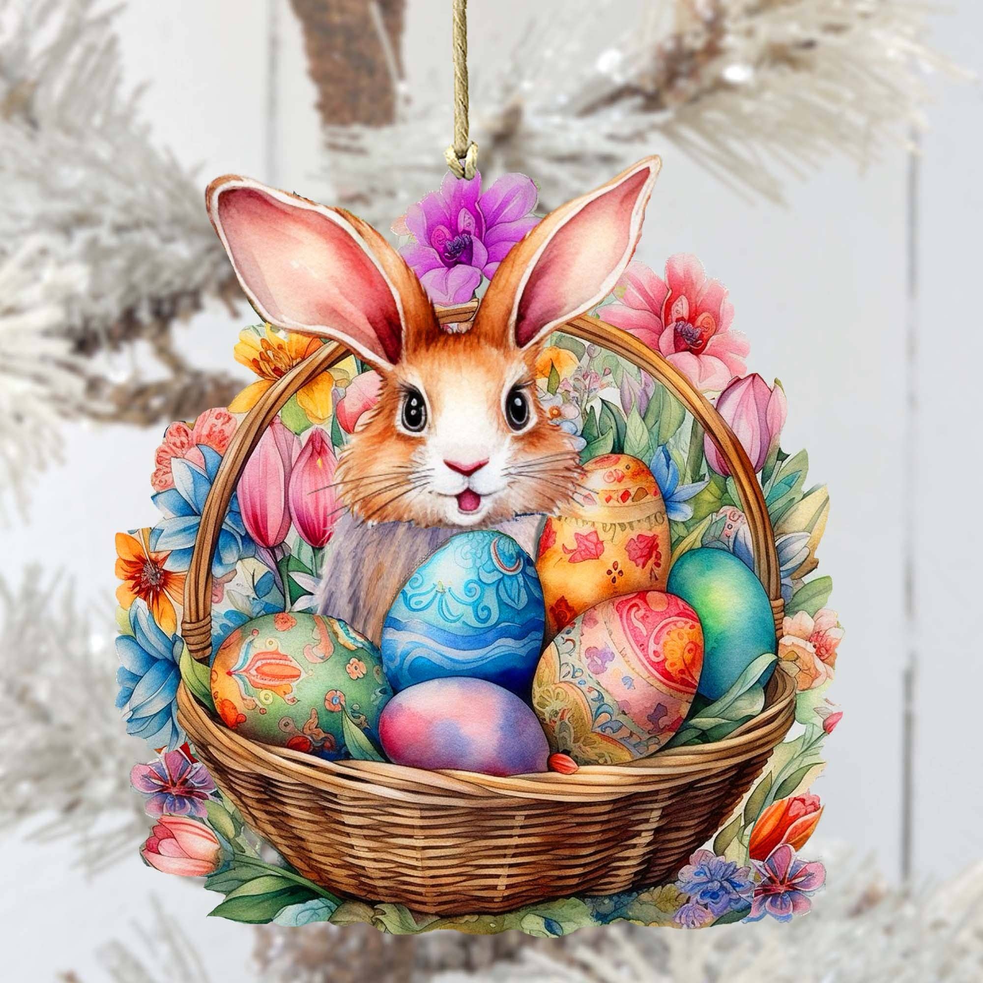 Wholesale 3dRose, Purple Bunny, Big Feet Next to Eggs, Flower Background, Happy Easter, Ornament