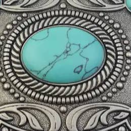 Western Oval Buckle in Silver finish with gold trims. In the center are 3 golden cacti w. Desert Theme Studded Leather Belt made with 100% Genuine Cow Leather Available in black or brown Width is 1.5" or 38 mm Total length from buckle pin to middle hole S: 32", M: 36", L: 39", XL:42" From middle hole to tip end is additional 5"