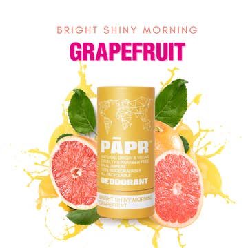 "Experience the invigorating scent of Bright Shiny Morning - Grapefruit Deodorant, infused with subtle notes of pink grapefruit essential oils. This deodorant offers a fresh, crisp, and citrusy aroma reminiscent of a dewy citrus grove on a clear summer day. Perfect for any time and place, it provides a full-bodied, pure scent. The eco-friendly packaging is made from 100 % Forest Stewardship Council (FSC)-certified paper, ensuring environmental responsibility and social benefits. Features: - Infused with pink grapefruit essential oils - Fresh, crisp, and citrusy scent - 100% FSC-certified paper packaging - Soy-based ink printing - Environmentally responsible and socially beneficial - Perfect for daily use People also searching for : natural deodorant, grapefruit scented products, unisex personal care, aluminum-free deodorant, eco-friendly deodorant