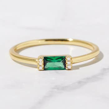 Baguette Cut Birthstone Stacking Ring in 925 Sterling Silver