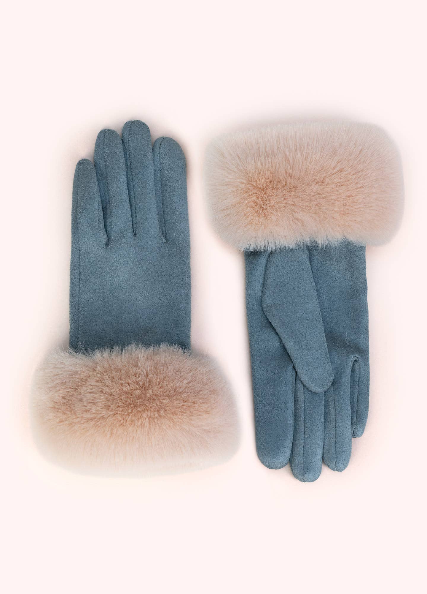 3855 Texting Faux Suede Fur Cuff Gloves Winter