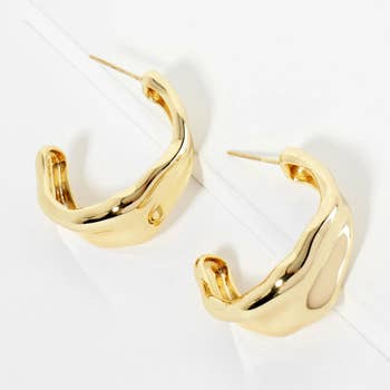 • Size : 1" X 1" X 0.5" • These bold sculpted mini hoop earrings feature a smooth, rounded shape that brings a modern, elevated touch to any look. Their dimensional design adds subtle statement appeal while maintaining everyday versatility, making them a perfect finishing piece for refined, stylish outfits. • Lead and Nickel Compliant • Made In Korea • Sterling Silver Post • Sterling Silver Dipped