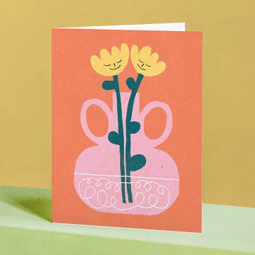 What's up? single card in cello sleeve 4 1/2" x 6 1/4" 100lb matte stock white envelope printed in Maine FSC certified