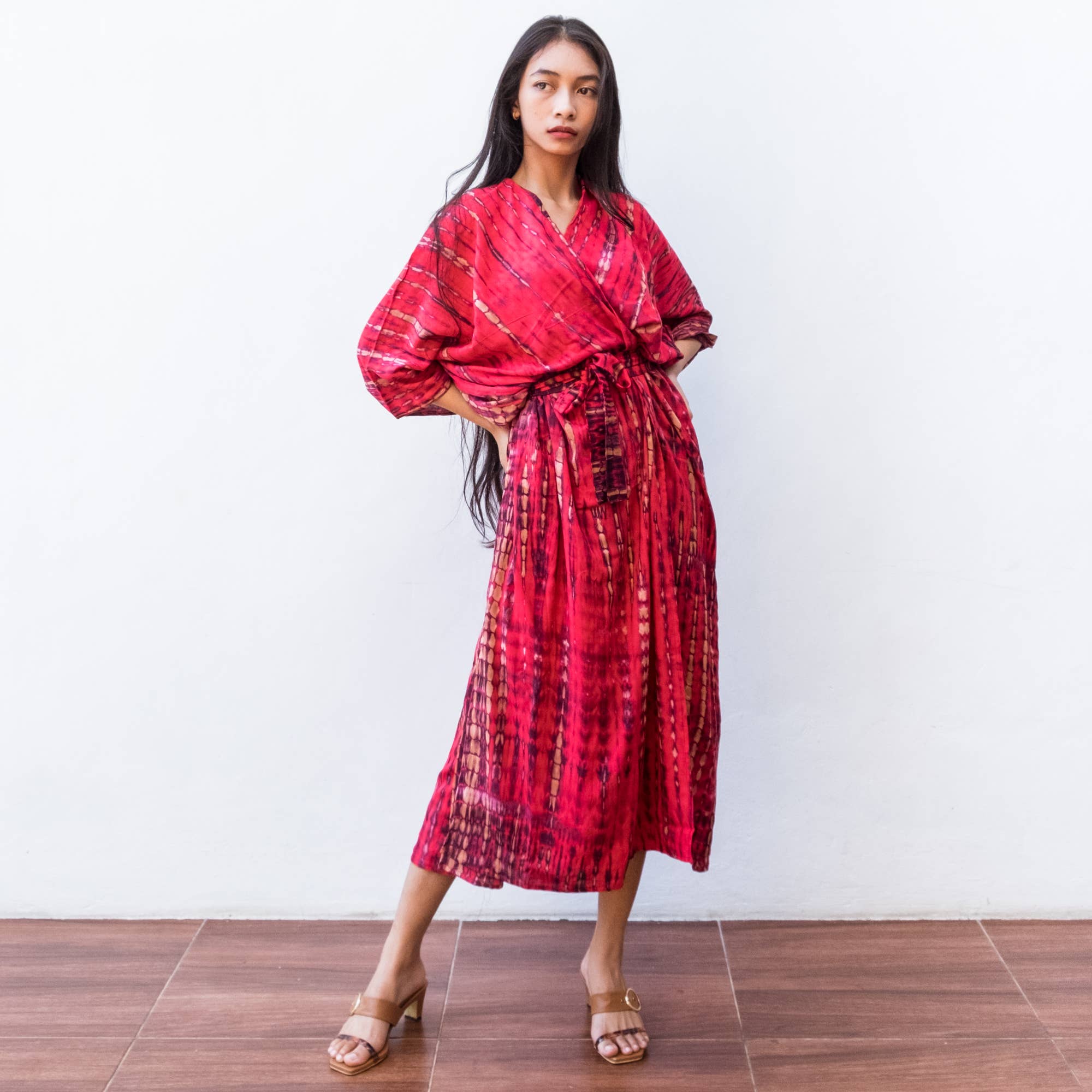 Our kimonos are tie dyed by hand and tailored individually with passion. Add style to your resort wear and lounge collection, give an extra touch of relaxed elegance inspired by peaceful island life. Perfect for bridesmaid gifts, poolside or beach party wear, beach cover up after a swim in the sea, or simply lounging at home. This stylish kimono can be worn from day to night, from beach to dinner. Bring tropical breeze to your holiday! One size fits all (approx. American size M - 2 XL) Width : 110 cm / 43 inch Length : 130 cm / 50 inch *Please allow 1-3 cm measuring deviation due to manual measurement Sideline opening Model height : 170 cm / 67 inch & heels : 5 cm / 2 inch Material : premium rayon *Fabric pattern & color may vary due to the making process by manual hand twisting ----- kimono robe cardigan sun dress kaftan summer holiday beach bikini cover up sarong resort hotel wear lounge bridesmaid gift tie dye shibori bali wedding bridesmaid rayon