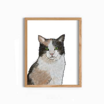 Color print on matte photo paper. Each print is packed in a plastic sleeve with a piece of 22pt chipboard for support. I hand sign each print on the back with my signature and year first released. I place a small sticker on the back of the sleeve with my website address and print size. Prints are borderless/cut down to the edge of the illustration. Printed, cut, and packaged at my home studio. The original drawing was made with watercolor and graphite on paper, and was on view at the 2021 "We are Home" show at Greensboro Project Space in Greensboro, NC. Inspired by how cats roll up into a croissant shape and tuck their little feets together.