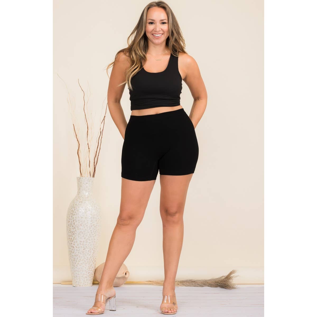 Wholesale Womens Plus Size Sculpting Shorts With Faux Leather Belt