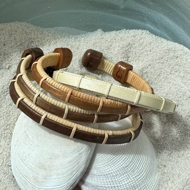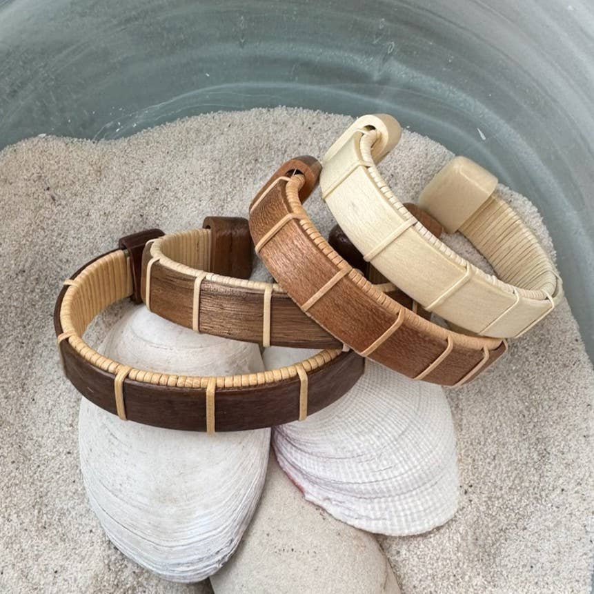 For Days That Feel Like Summer The bracelet you’ve been dreaming about—with a fresh new detail. Our Surf clasp bracelet takes the beloved Nauti Clasp design and adds a bold new twist: an updated pattern on the clasp that echoes the rhythm of the waves. Handwoven with subtle, hand-dyed cane in Summer Sky or Beach Glass, this bracelet brings the ocean's blues straight to your stack. Details: - Hand-dyed cane in Summer Sky (soft blue) or Beach Glass (seafoam green) - Cane weaver available in Light (lighter color) or Natural (darker color) - Updated patterned clasp design - Lightweight, durable, and handcrafted for everyday wear - Made in the USA - Handcrafted by trained artisans in our Military Spouse Weaving Program Please allow 3 weeks for production of this handmade item. Note: The colors of this natural fiber may vary slightly.