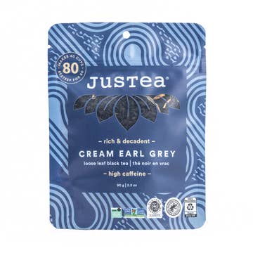 WHY CUSTOMERS LOVE JUSTEA: Award-winning taste, stand-out packaging, and a farmer-direct story! CREAM EARL GREY is Smooth & Rich with notes of Creamy Vanilla & Bergamot. GREAT VALUE: 80 cups of loose leaf tea per pouch! STAND-OUT PACKAGING: Each stand-up and resealable pouch has a window in the front of showing the beautiful whole tea leaves inside. The back of the pouch shares the story of the Kenyan tea farmer who helped make the tea. FARMER-DIRECT STORY: Every purchase directly supports small-scale Kenyan tea farmers. Justly Made Tea. EARTH-FRIENDLY: 100% recyclable and reusable. These resealable pouches also make a great refill option for our Loose leaf tea tins. HAND-PICKED TEA from Kenya: Organically grown, free of chemicals and pesticides. Non-GMO. Proud member of Fair Trade Federation. 100% NATURAL INGREDIENTS: Kenyan Black Tea, Natural Bergamot Oil, Calendula Petals, Natural Vanilla Cream Flavour (Gluten/Sugar-Free and High Caffeine). 2 YEAR SHELF LIFE Guaranteed