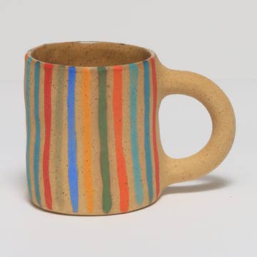 Handled stoneware coffee mug with an electric orange pop of color. Textured raw clay exterior and finished with a food safe purple glaze. Holds 10-12oz of hot or cold liquid. *Slight variations will occur due to it handmade nature