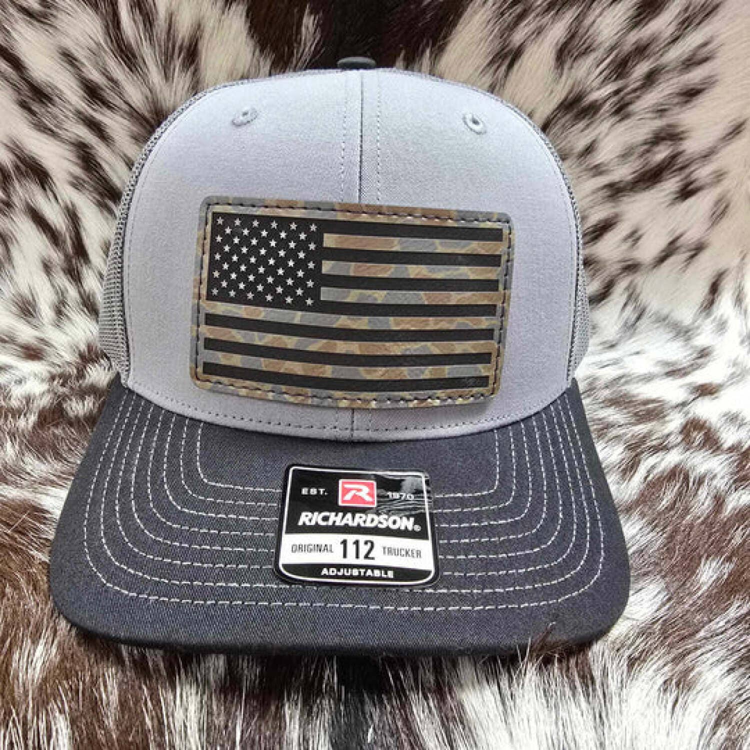 These are made to order and fresh off the engraver! They may have a scorch/burn scent to them initially but will fade overtime as exposed to air! The design is engraved into the patch and not vinyl or any sort of sticker. Select the color of hat and patch! The chestnut patch is darker brown engraves black, gray patch engraves black and black patch engraves silver, all are made from vegan leather. Our preferred brand of hat is Richardson 112, however, in the event of a stock shortage we reserve the right to use YP Classics 6606 (YP Classics makes the famous brand FlexFit). Richardson 112 is made from 60% cotton & 40% polyester with 100% polyester mesh back with adjustable snapback. YP Classics 6606 is made from 65% cotton & 35% polyester with 100% polyester mesh back with adjustable snapback.