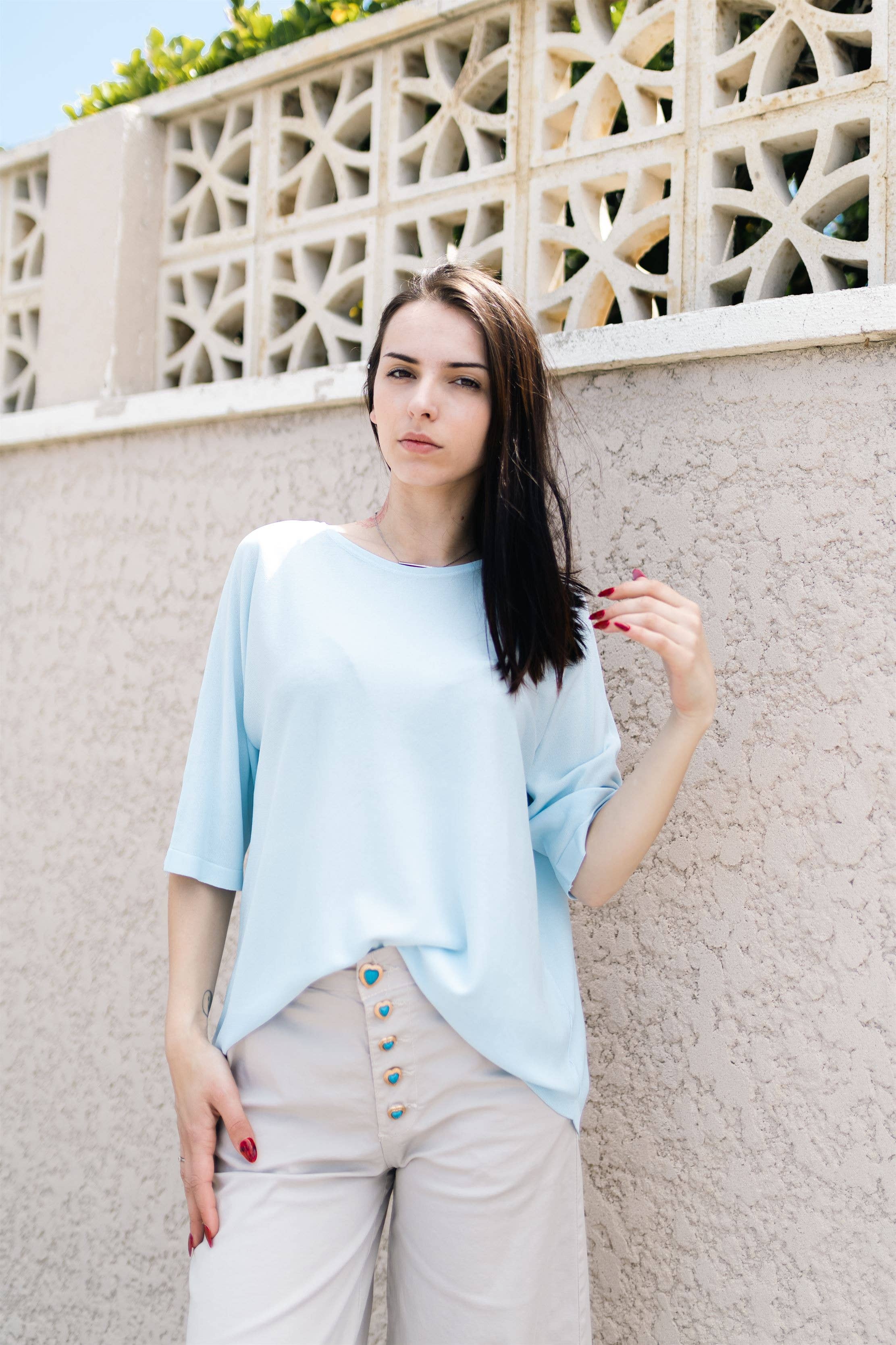 V-neck tunic with satin neckline 100% viscose Made in Italy
