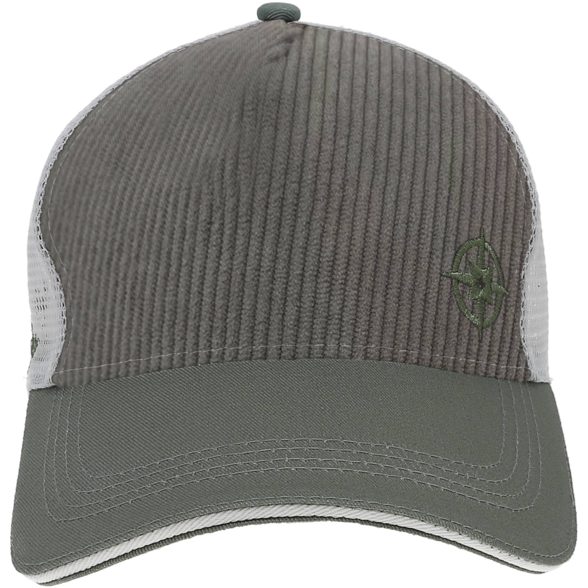 60/40 cotton/polyester 100% polyester mesh back Structured, mid-profile, five-panel Pre-curved contrast stitched visor Adjustable plastic snapback