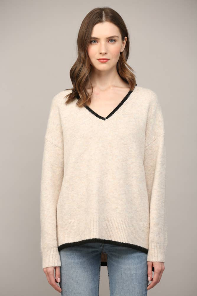 ....SI-21303 Long Puff Slv V Neck Rib Sweater