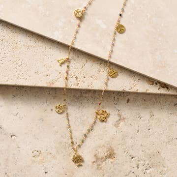 Our Zen Collection is a favorite with yogis everywhere! Handmade for fair wages, these necklaces include charms that remind you to slow down, take some time for yourself, and just breathe. Each piece is signed by the artisan on the card or the tag so your shoppers will know exactly who they are supporting. We are Fair Trade Federation members so you can be sure the jewelry you carry supports a living wage for a woman in Nicaragua. SHIPS FROM ATLANTA GA. Product has already been imported and no tariffs will be due by the purchaser! Product Details: - Length: 16 inches - Materials: Glass beads, high quality silver plated findings & charm, stone beads - MSRP $30. Margin 53%
