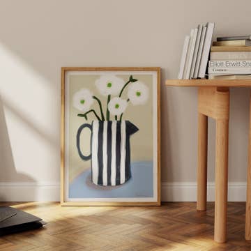 This original design by Leslie Drapkin of a stylish vintage-esque dapper dog sending smiles is exactly what we need at the moment. Truly, who doesn’t need a few smiles sent their way? This fun illustration was drawn using gouache, inks, and charcoal. It is an archival pigment print on Epson Cold Press Bright. This richly hued museum quality print is perfect for display in any number of places in your home or office. 8x11 inches Packaged with chipboard backing in protective sleeve Frame and mat no included
