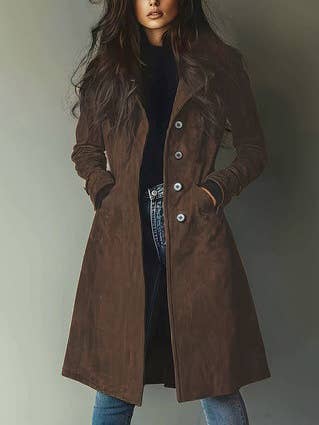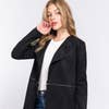 Wholesale Long Sleeve Front Two Zipper Detail Faux Suede Long Jacket