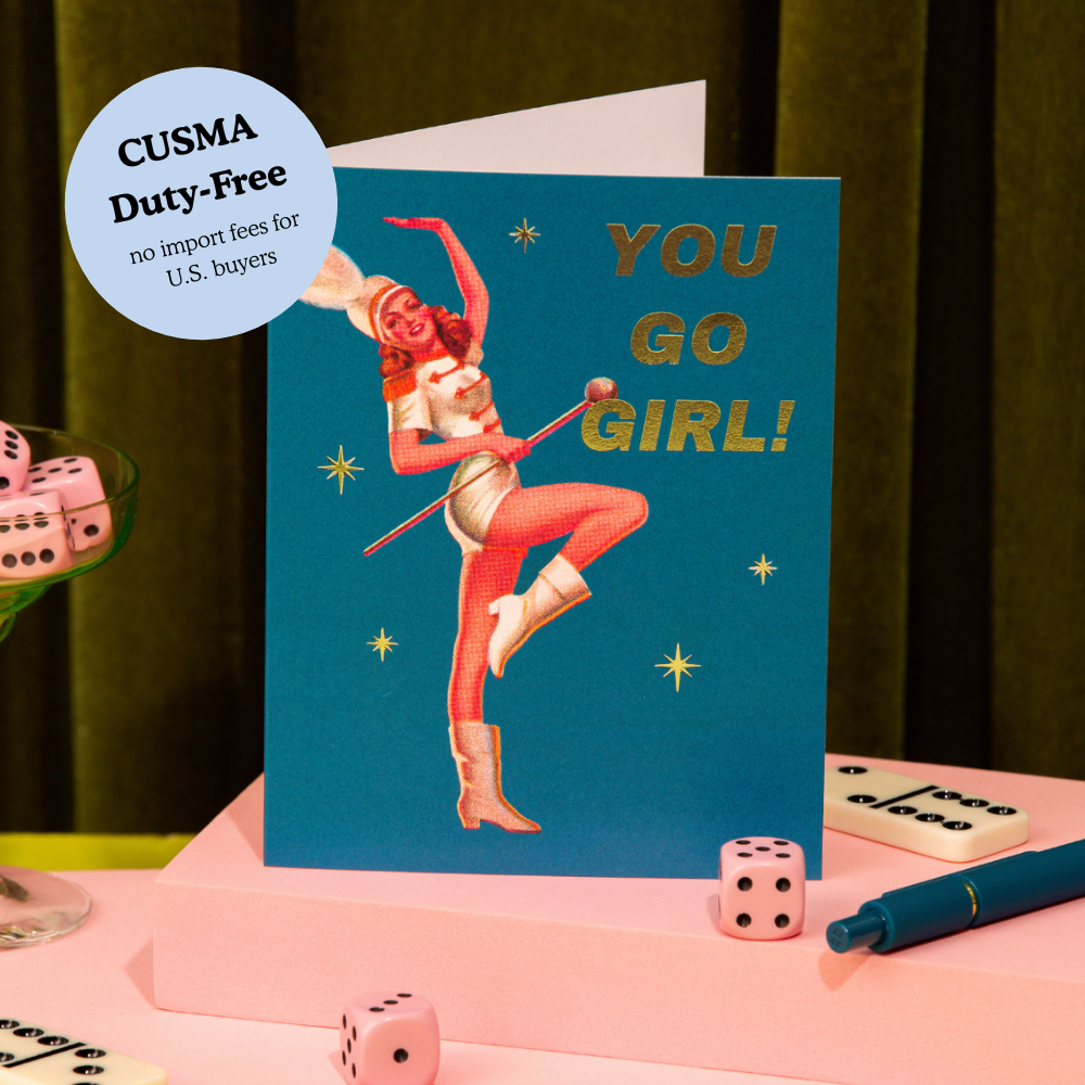 Our signature greeting cards are designed to delight — with bold graphics, premium cardstock, and just the right pop of shine. Each card is blank inside so you can say exactly what you mean (funny, heartfelt, or both). Details: ✿ A2 size (4.25" x 5.5") ✿ Printed on heavyweight cardstock with silver foil accents ✿ Blank inside ✿ Paired with a coordinating envelope ✿ Packaged in a biodegradable protective sleeve ✿ Designed and printed in Hamilton, Ontario