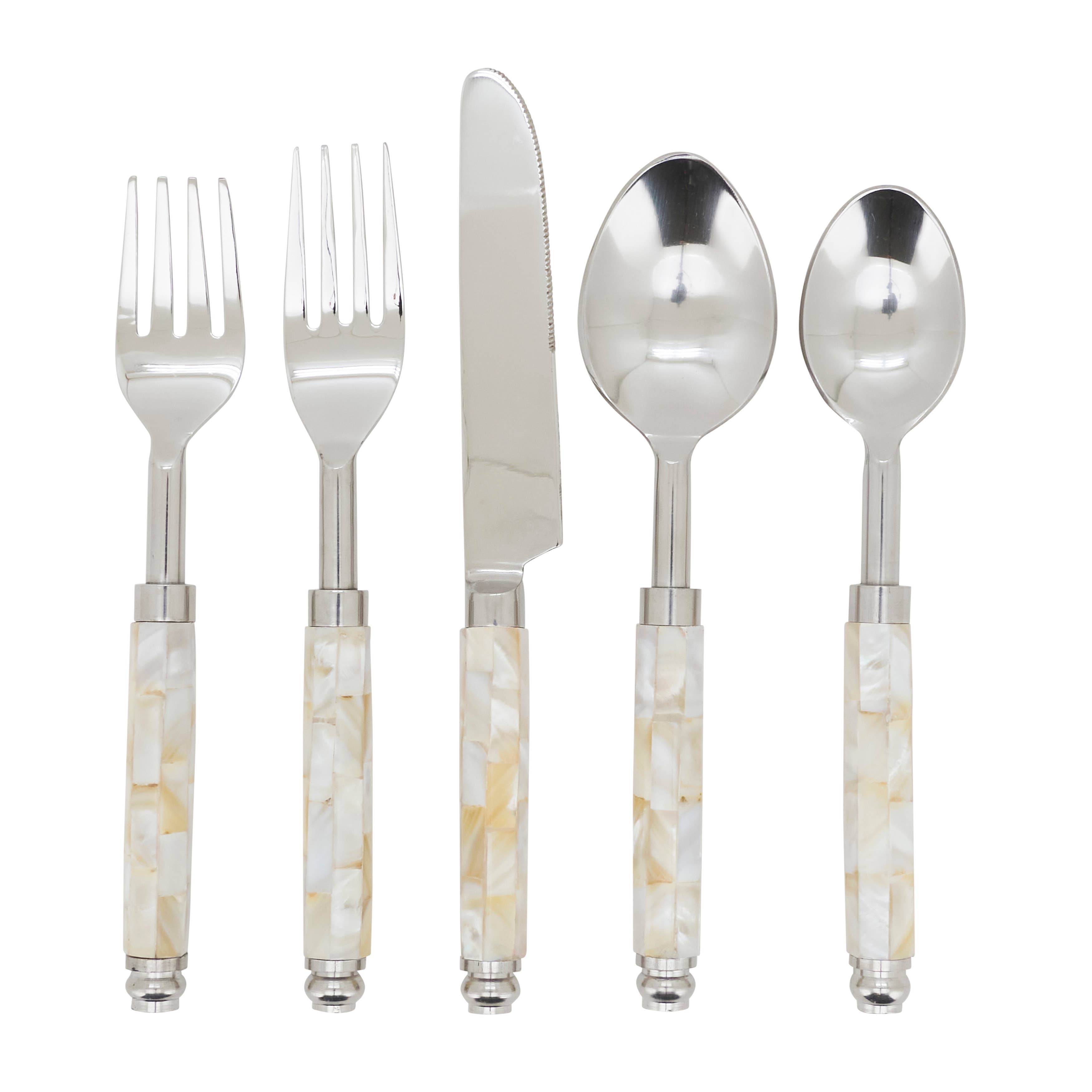 Our chic Basketweave 5-Piece Flatware Set, designed to complement our entire serving collection. This set includes a dinner fork, salad fork, dinner knife, soup spoon, and teaspoon, each crafted with an 18/10 stainless steel blade and a distinctive basketweave handle. Care Instructions: Due to the basketweave handle, hand washing is recommended to maintain the set's durability and appearance. This item is final sale and cannot be returned or exchanged. Product SKU#: BAS022