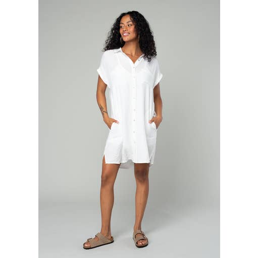 Not your average shirtdress. With its unique origami back detail and french-cuffed long sleeves, this dress will serve from boardroom to date night. The thick poplin fabric feels luxurious and incredibly comfortable with a good amount of stretch. From its semi-hidden back button closure to its high-low hemline, this shirtdress is sure to empower your wardrobe.