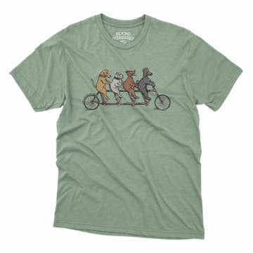 French Bulldog Men's/Unisex Shirts The Design: Hand drawn french bulldog on a bicycle. The Process: We’ve printed our exclusive design through a high mesh screen using lightweight ink. All designs are printed by hand. We go through great lengths to give you comfortable clothing made to wash and wear over and over again. The Shirts: Style - Color - Fabric * 90's Heavy Tee - Heather Grey - 100% cotton * Classic Tee - Silver - 100% Ring Spun Cotton * 70's Vintage Tee - Tri-Grey - 50% polyester, 25% airlumed combed & ringspun cotton, 25% rayon *Because we hand print each item to order it can take up to 14 business days to fulfill orders.