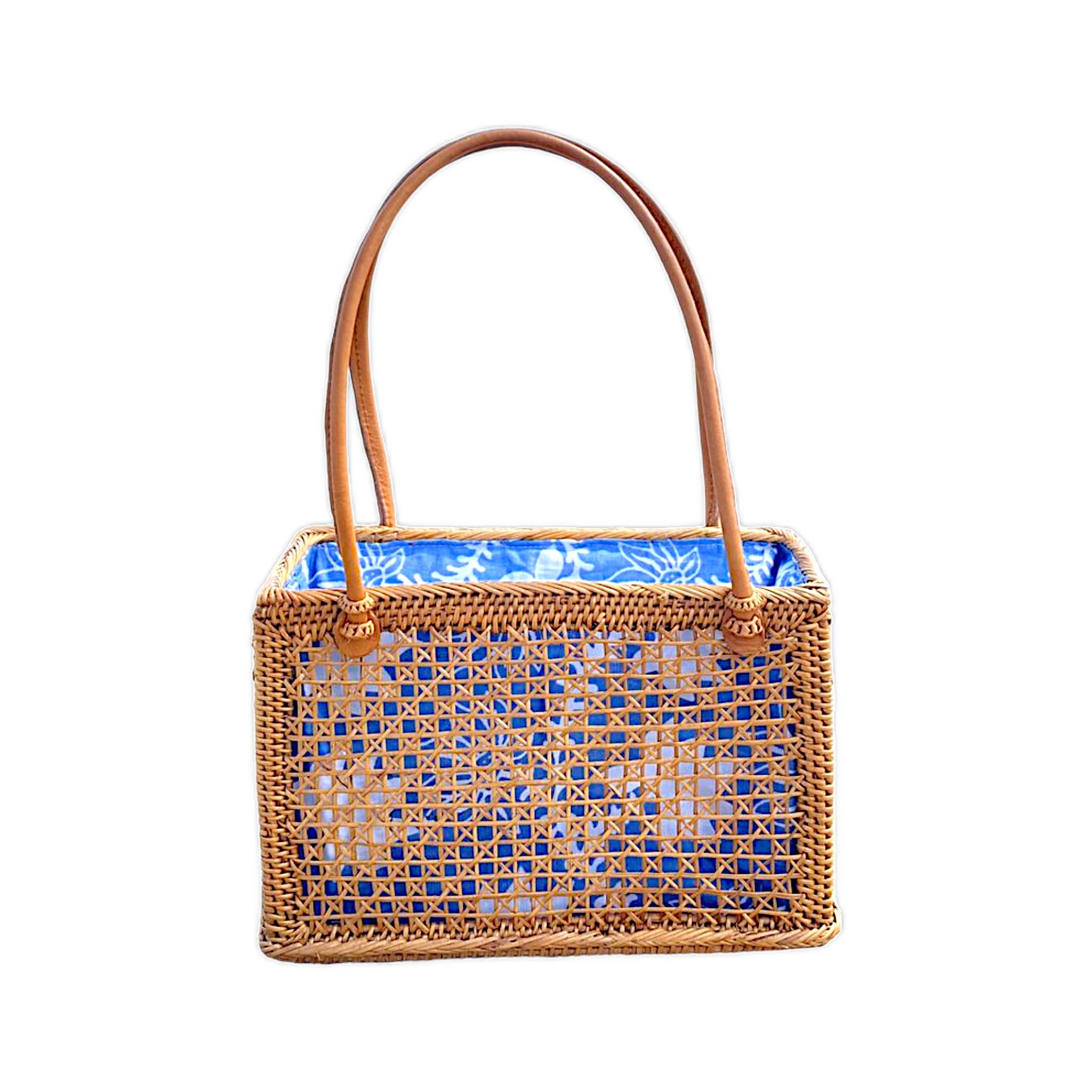 The Artisan and Company features a stunning range of rattan bags created using top-quality rattan and woven by skilled artisans in Indonesia. Each bag within the collection has intricate weaving using traditional techniques to ensure a top-quality finish. The rattan bag collection features a beautiful honey-brown finish due to the care given during production. This new style to the collection features a roomy interior, intricate mesh detailing design, and a stunning round-shaped top handle. Our bags are perfect for everyday wear; you can wear them day or night. Handcrafted in Indonesia by our certified artisan partners. Size: 13" H x 13" W x 4" D Material: Rattan