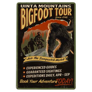 Customizable with a FREE namedrop of your choice. Let us know what you want it to say (your store name, city, state, or anything else). Ever wonder what bigfoot has been up to? Turns out, he is out hiking! This fun and whimsical illustration of sasquatch is perfect for anywhere people love to be out in nature. It makes for an easy sale and a great souvenir. Features: • Free Namedrop • Created with real wood • USA designed, built, and shipped • Easy to sell! This real wood Live Edge Wall Art is made using a mix of colorful inks and laser cutting to create a believable and beautiful 'live edge'. Sizes: Postcard (5pk) - $2.80ea Measures: 3.86"x5.5"x.125" Meets 100% of USPS mailing requirements Just add 2 first-class stamps Magnet (5pk) -$2.80ea Measures: 2.5"x3.5"x.125" Includes a strong magnet along the back Bigfoot facts: Legend says that a Bigfoot can grow up to 15 feet, but they usually just have two…